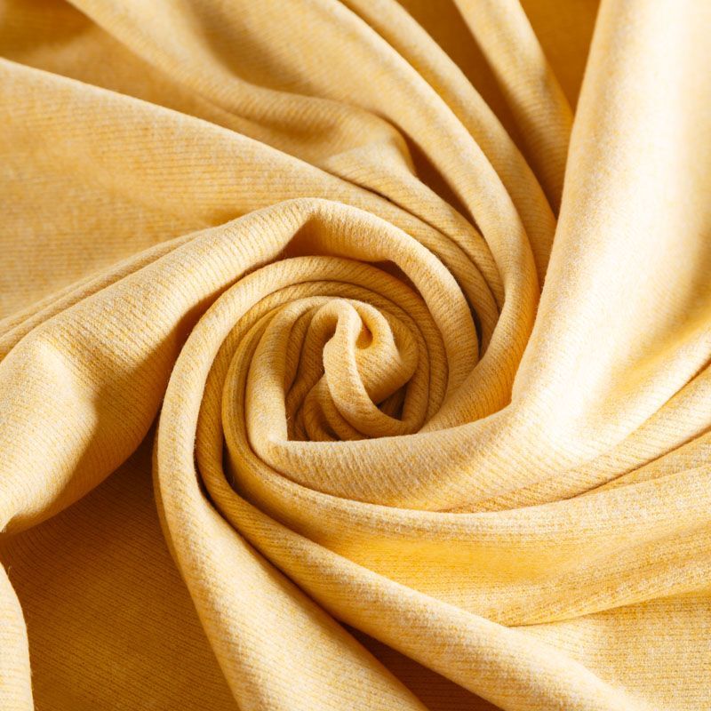 Плотное трикотажное полотно с вязаной фактурой. Ткань прочная и практичная в носке, совсем не мнется, отлично держит форму, упругая, при этом хорошо тянется в поперечном направлении. Подойдет для прямых силуэтов изделий, а также объемных в стиле оверсайз, для пошива теплого жакета, кардигана, жилета,  брючного костюма, юбки, платья.