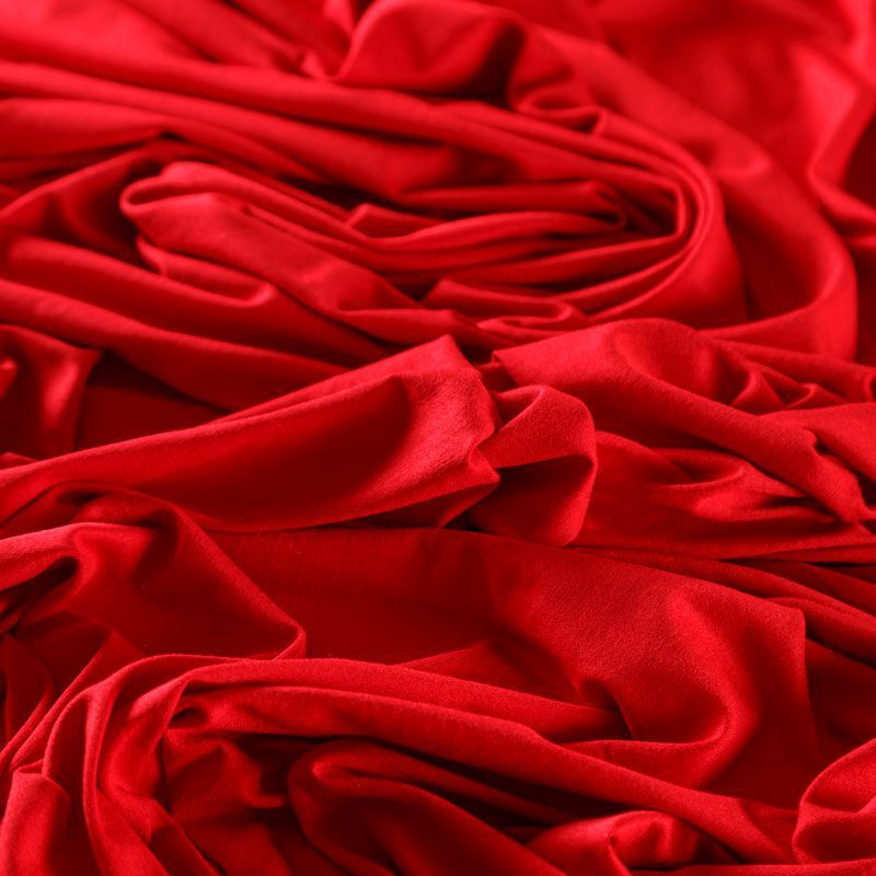 Итальянский вискозный трикотаж красного оттенка с гладкой поверхностью, который особенно эффектно смотрится в драпировке. Материал средней плотности, не просвечивает, приятный к телу и комфортный в носке. Подойдет для пошива топов, футболки, бадлонов, лонгслива, кардигана, спортивного платья.