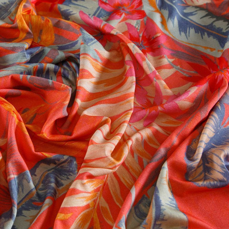 Трикотаж 056-14810 кораллово-красный принтованный в Якутске