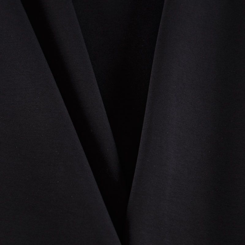 Трикотажное полотно средней плотности с хорошим смесовым составом. Материал очень мягкий, пластичный, тянется за счет эластана в составе. Поверхность гладкая, матовая, не просвечивает. Отлично подойдет для пошива изделий свободных и прилегающих силуэтов: платьев, лонгсливов, футболок, спортивной одежды. Трикотаж почти не мнется, очень прочный на разрыв.