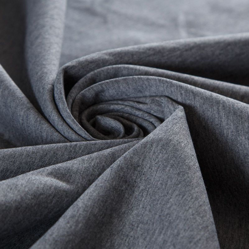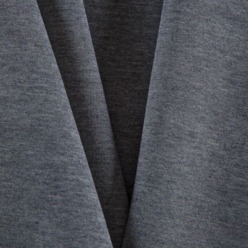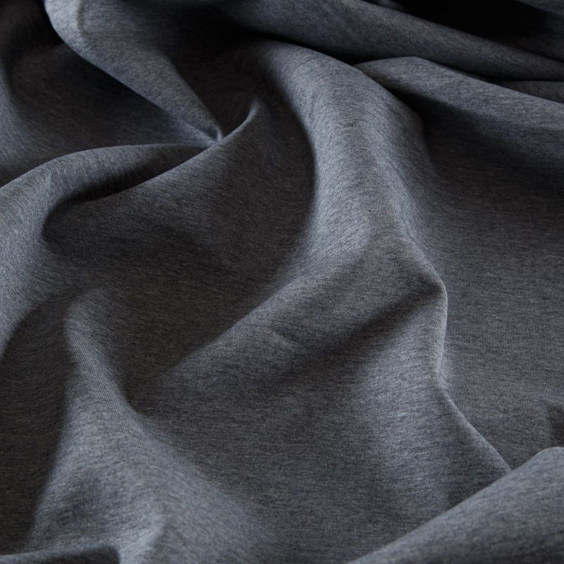 Трикотажное полотно средней плотности с хорошим смесовым составом. Материал очень мягкий, пластичный, тянется за счет эластана в составе. Поверхность гладкая, матовая, не просвечивает. Отлично подойдет для пошива изделий свободных и прилегающих силуэтов: платьев, лонгсливов, футболок, спортивной одежды. Трикотаж почти не мнется, очень прочный на разрыв.