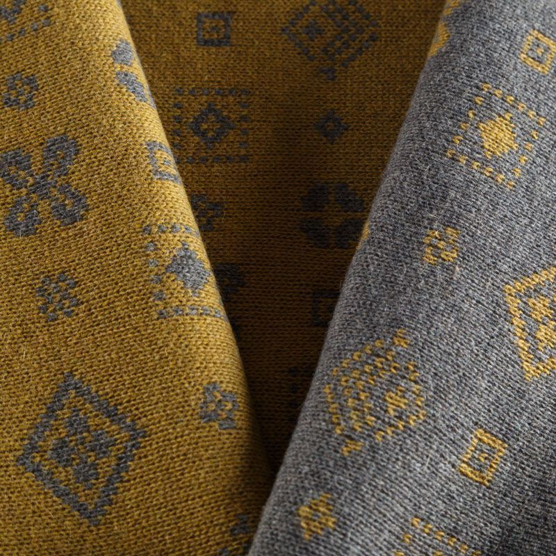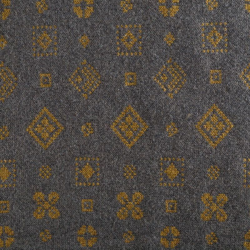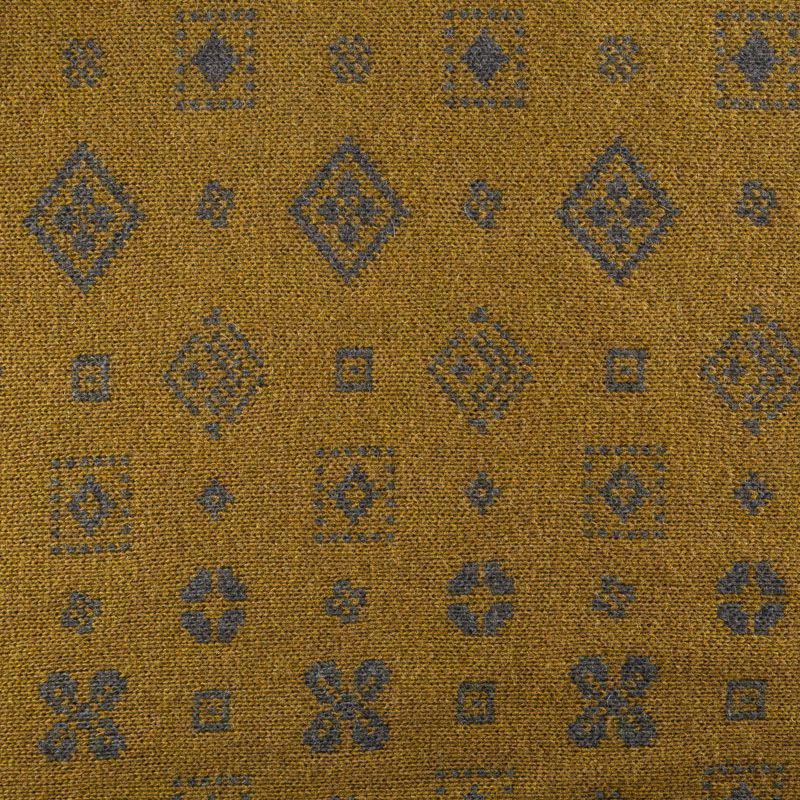Итальянский теплый мягкий вязаный шерстяной трикотаж, два слоя которого соединены между собой жаккардовым геометрическим узором. Полотно очень пластичное, приятное на ощупь, не колется. При соответствующей обработке швов одежду из этого трикотажа можно носить на обе стороны. Подойдет для пошива теплых уютных свитеров, кардиганов, пальто, костюмов, теплого платья, свитшота, джемпера.