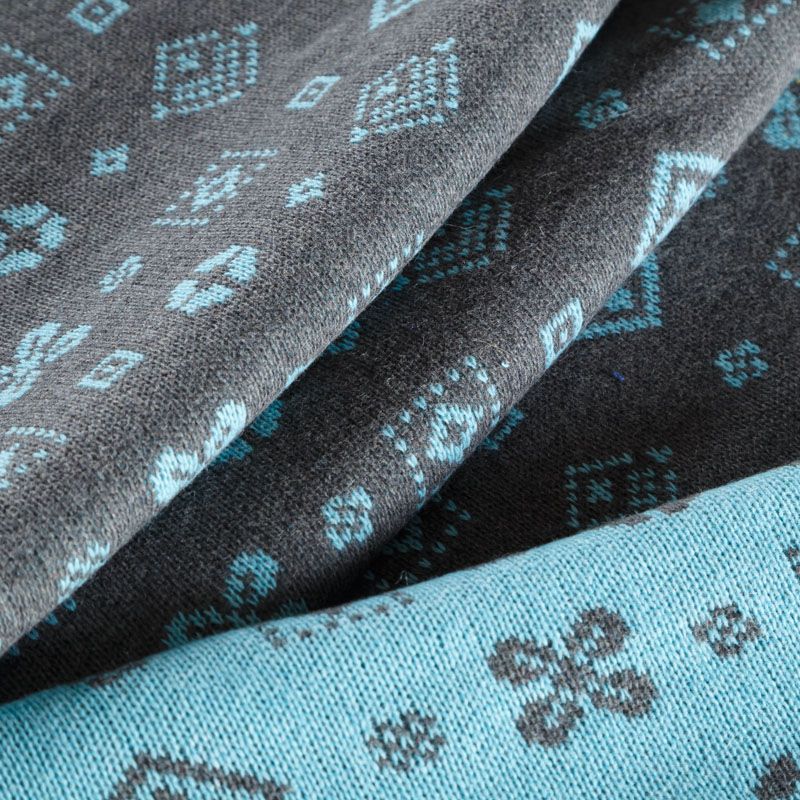 Итальянский теплый мягкий вязаный шерстяной трикотаж, два слоя которого соединены между собой жаккардовым геометрическим узором. Полотно очень пластичное, приятное на ощупь, не колется. При соответствующей обработке швов одежду из этого трикотажа можно носить на обе стороны. Подойдет для пошива теплых уютных свитеров, кардиганов, пальто, костюмов, теплого платья, свитшота, джемпера.