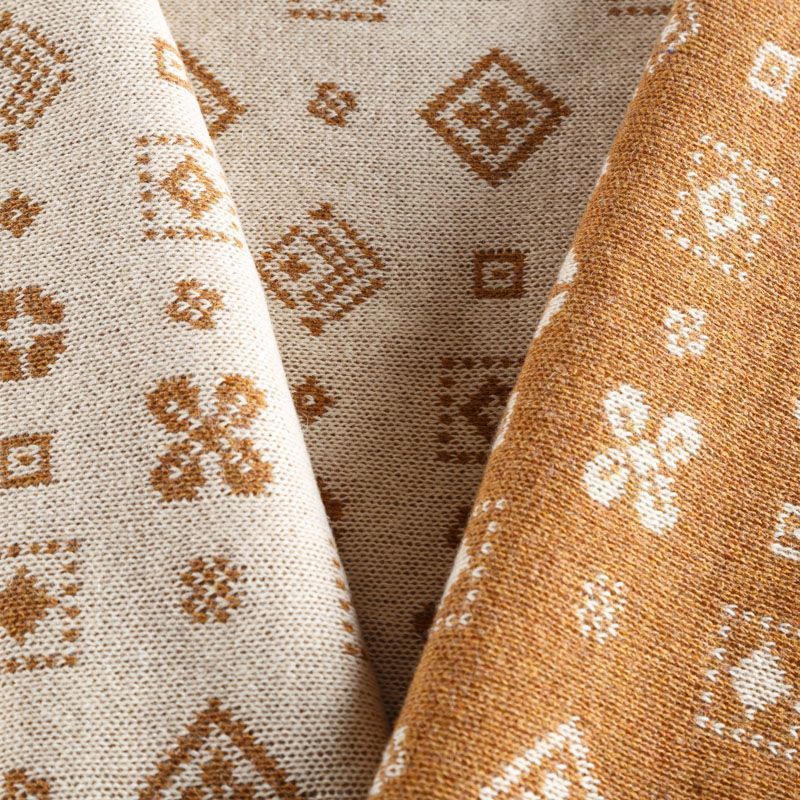 Итальянский теплый мягкий вязаный шерстяной трикотаж, два слоя которого соединены между собой жаккардовым геометрическим узором. Полотно очень пластичное, приятное на ощупь, не колется. При соответствующей обработке швов одежду из этого трикотажа можно носить на обе стороны. Подойдет для пошива теплых уютных свитеров, кардиганов, пальто, костюмов, теплого платья, свитшота, джемпера.