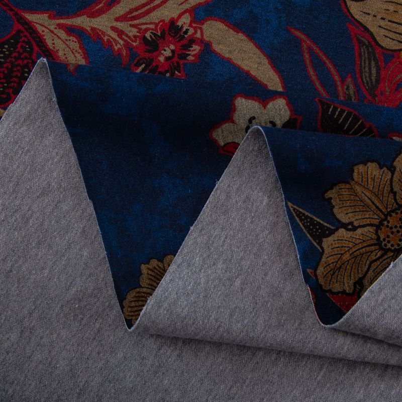 Трикотаж двухсторонний 056-19654 темно-синий принтованный в Якутске