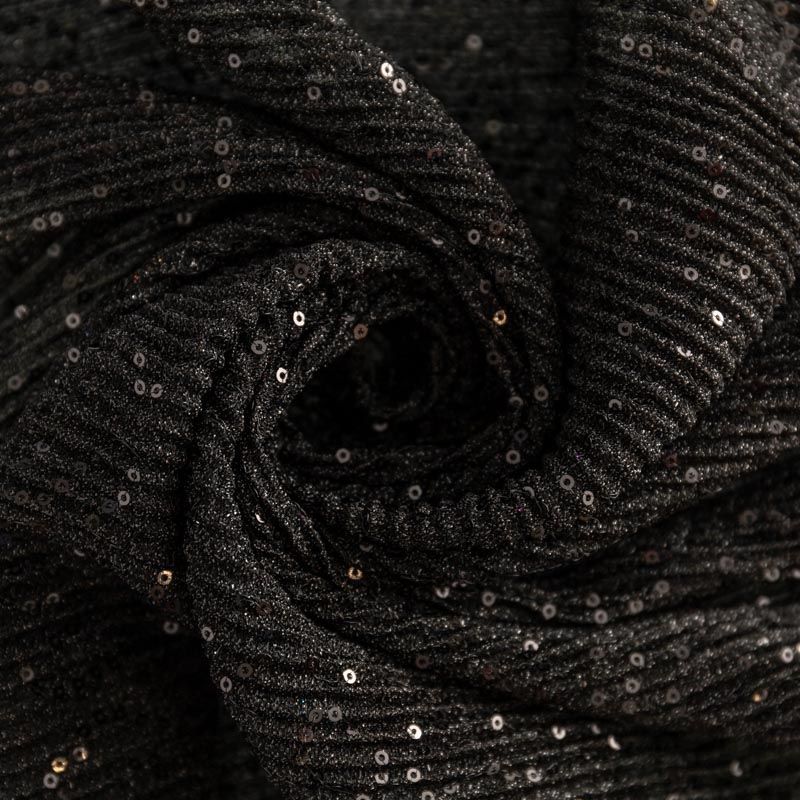 Трикотаж гофре 1120-341-056-0026 черный с пайетками