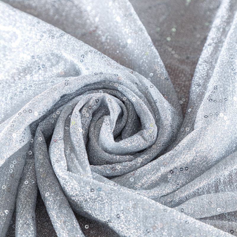 Трикотаж-гофре с пайетками 056-09123 серебристый однотонный