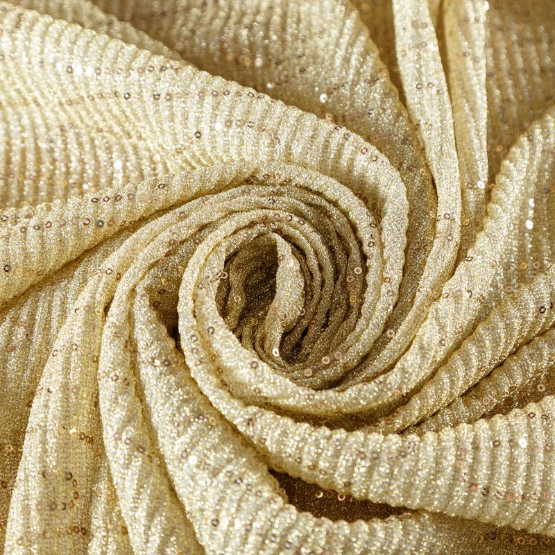 Трикотаж-гофре с пайетками 056-09124 желтое золото однотонный