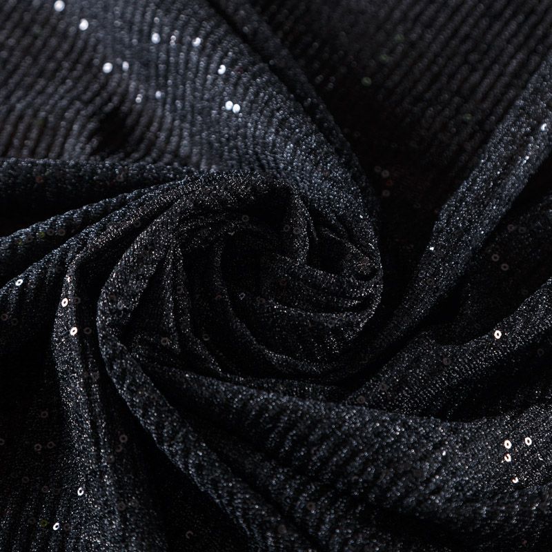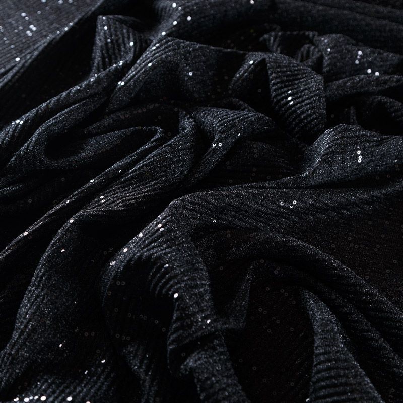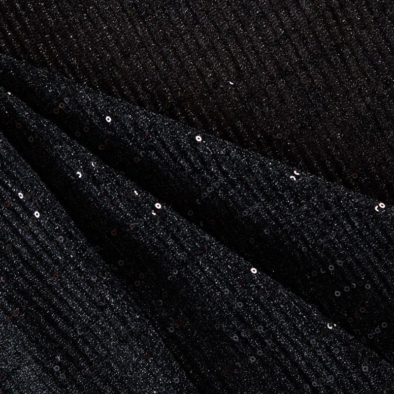 Трикотаж-гофре с пайетками 056-09129 черный однотонный