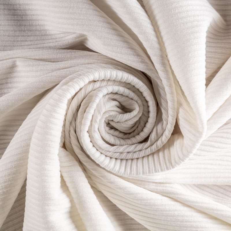 Относительно тонкий трикотаж, обладающий высокой степенью растяжимости. Благодаря технике вязания "лапша" он напоминает резиночку; немного просвечивает, мягкий и приятный на ощупь, хорошо драпируется по косой. Из этого пластичного материала можно сшить множество базовых вещей: платья, юбки, бадлоны, кардиганы, лонгсливы, топы и блузы.