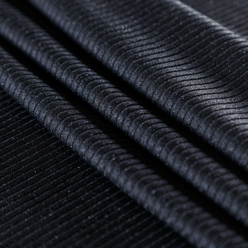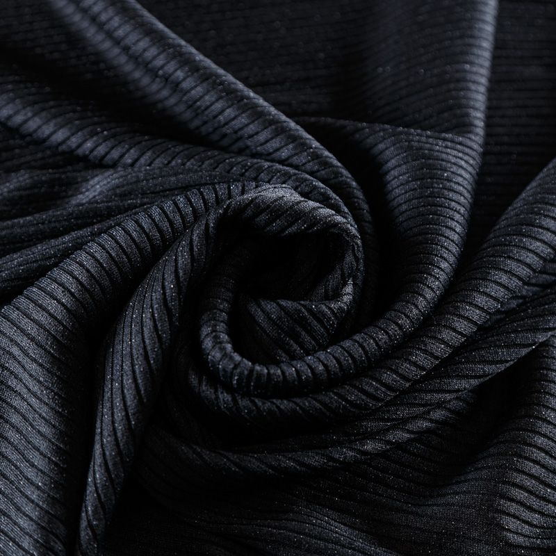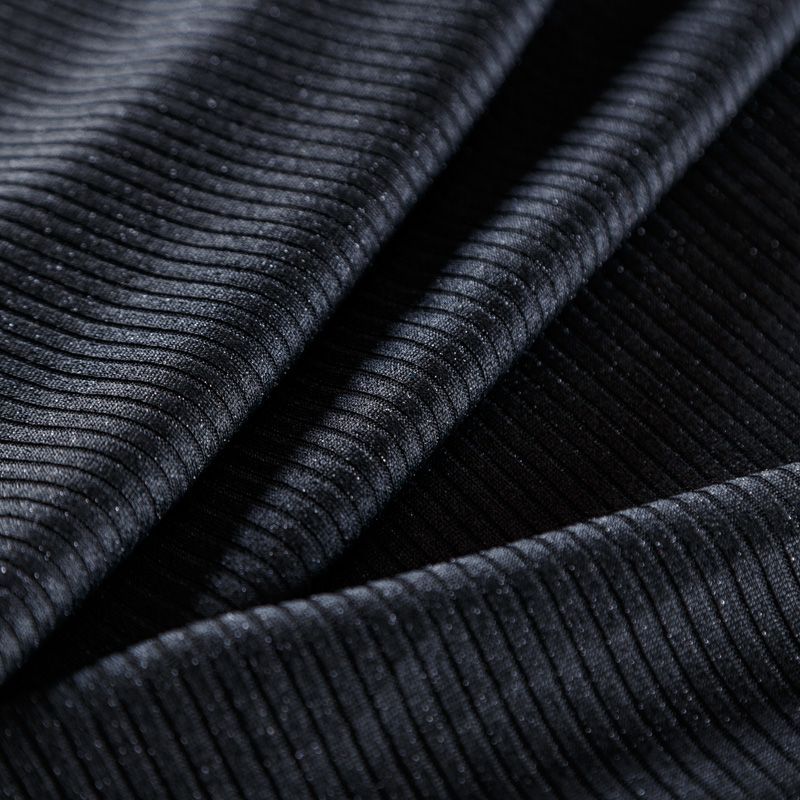 Трикотаж-лапша средней плотности, с высокой степенью эластичности, поверхность рельефная за счет эффекта резинки. С изнанки трикотаж гладкий, комфортный, подходит для использования без подклада. Сшить из такого полотна можно топы, лонгсливы, водолазки, платья,  юбки, брючные комплекты. Направление полос - вдоль линии кромки.