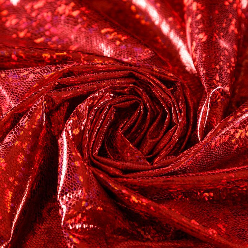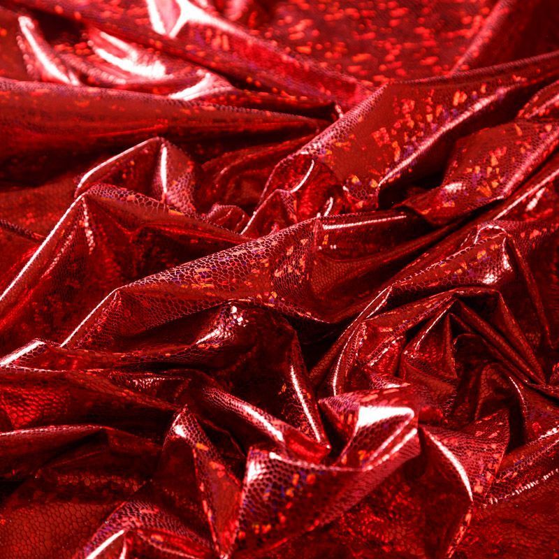 Эффектное трикотажное полотно с напыленными разноцветными блестками. Поверхность фактурная с рисунком под рептилию, который не деформируется при растяжении трикотажа. Материал очень пластичный, образует струящиеся мягкие складки, отлично тянется, не просвечивает, не мнется. Изнаночная сторона матовая, приятная на ощупь. Идеальный выбор для нарядных моделей, гимнастических и танцевальных костюмов.