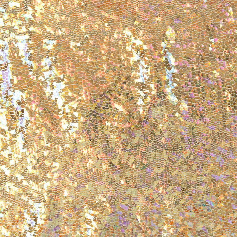 Эффектное трикотажное полотно с напыленными разноцветными блестками. Поверхность фактурная с рисунком под рептилию, который не деформируется при растяжении трикотажа. Материал очень пластичный, образует струящиеся мягкие складки, отлично тянется, не просвечивает, не мнется. Изнаночная сторона матовая, приятная на ощупь. Идеальный выбор для нарядных моделей, гимнастических и танцевальных костюмов.