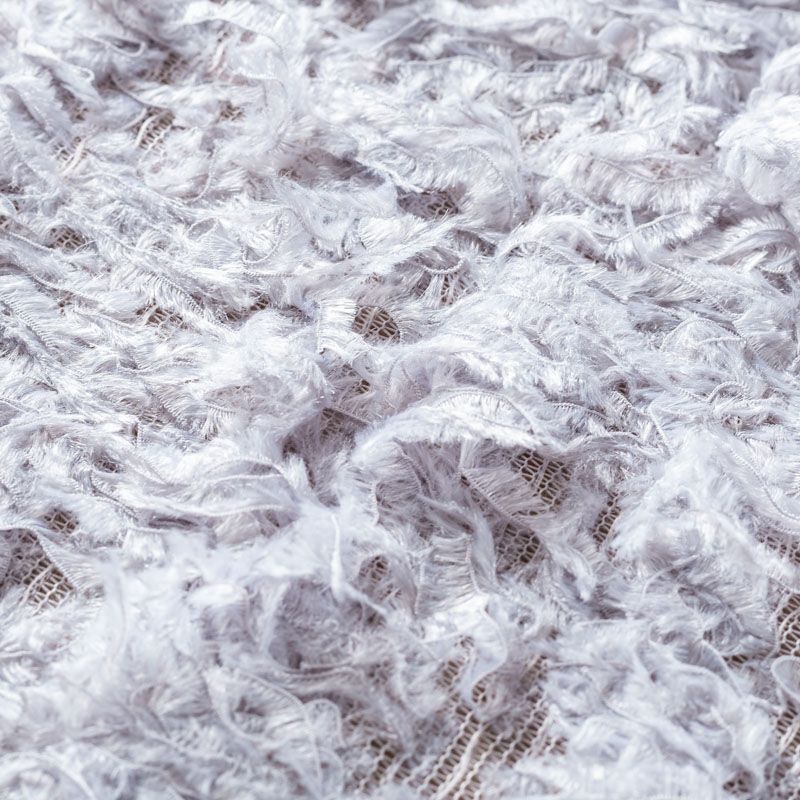 Легкое нарядное полотно с необычной фактурной поверхностью с многочисленными мягкими «пёрышками» из тонкой текстильной бахромы на трикотажной основе. Ткань очень пластичная, драпируется, хорошо тянется, очень приятная на ощупь. Отлично подойдет для нарядных коктейльных платьев, туники, юбки сценических и театральных костюмов.