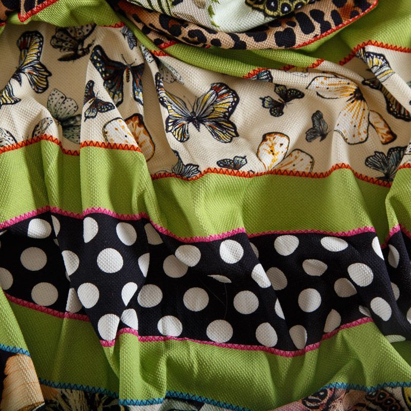 Трикотаж пике 056-14649 зеленое яблоко принтованный