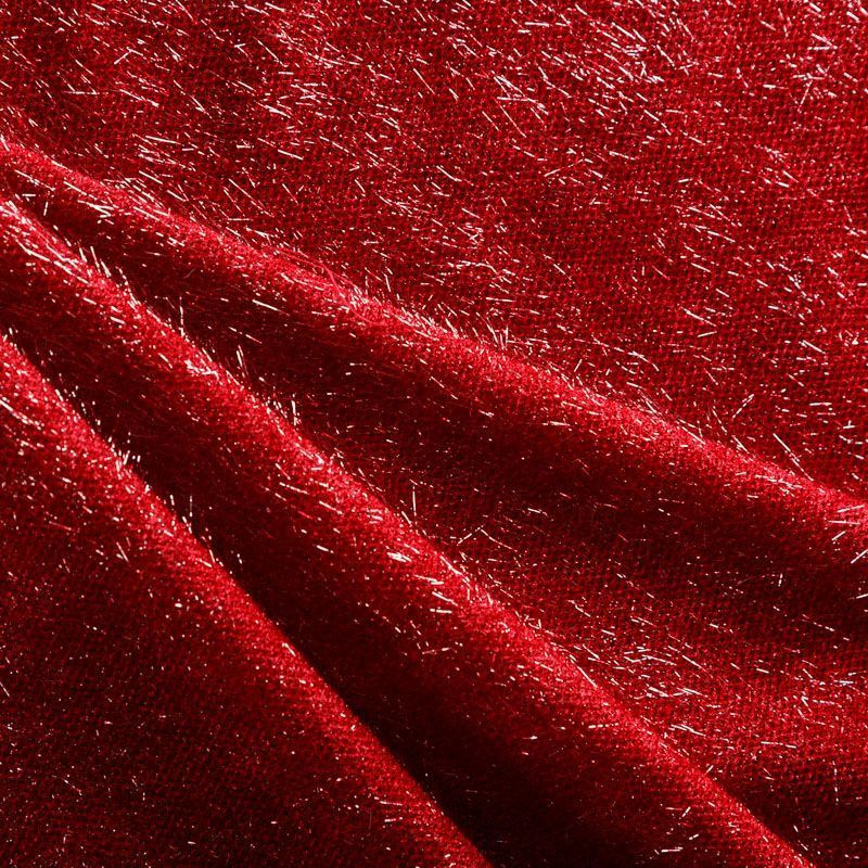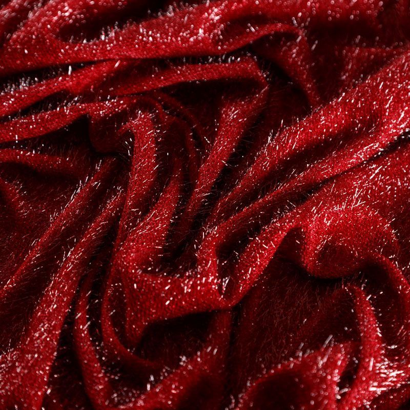 Нарядный трикотаж с люрексом в темно-красном оттенке. Полотно мягкое, пластичное, хорошо драпируется, не колется и не просвечивает. Подойдет для пошива логслива, топа, туники, платья, кардигана, юбки.