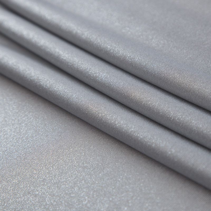 Итальянский смесовый трикотаж из коллекции Michael Kors в сером оттенке с деликатным напылением. Полотно пластичное, тянется за счет эластана в составе, очень приятен к телу, поверхность гладкая, слегка просвечивает.