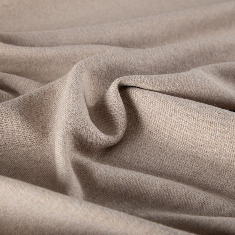 Трикотаж шерстяной вязаный 056-19827 бежевый однотонный