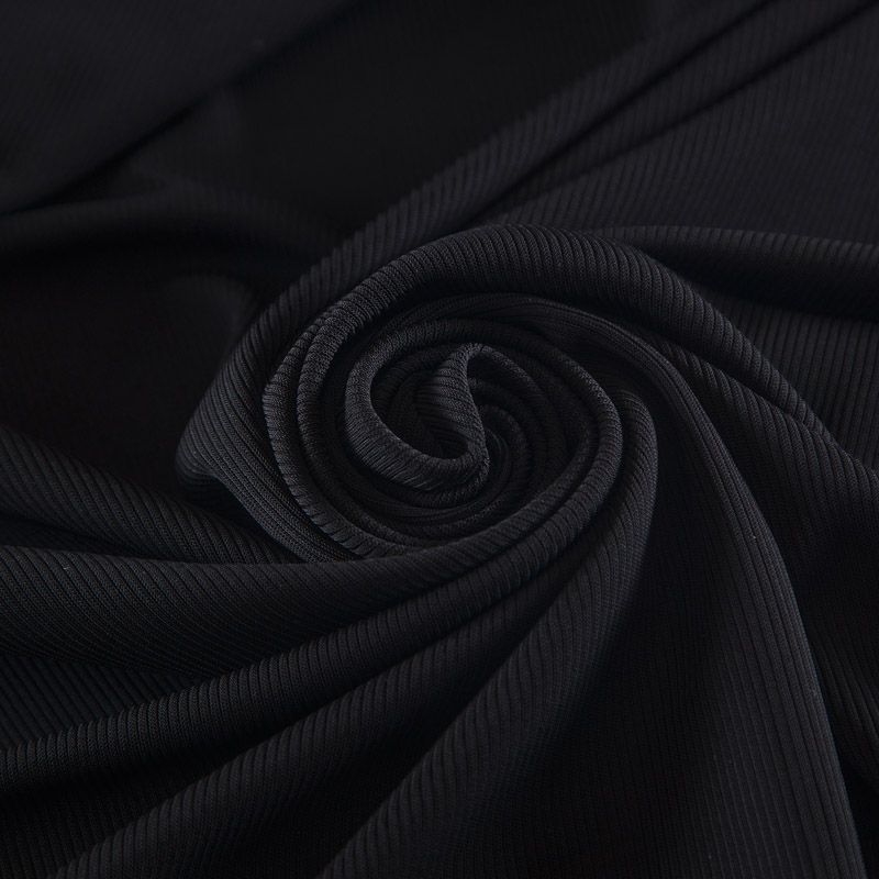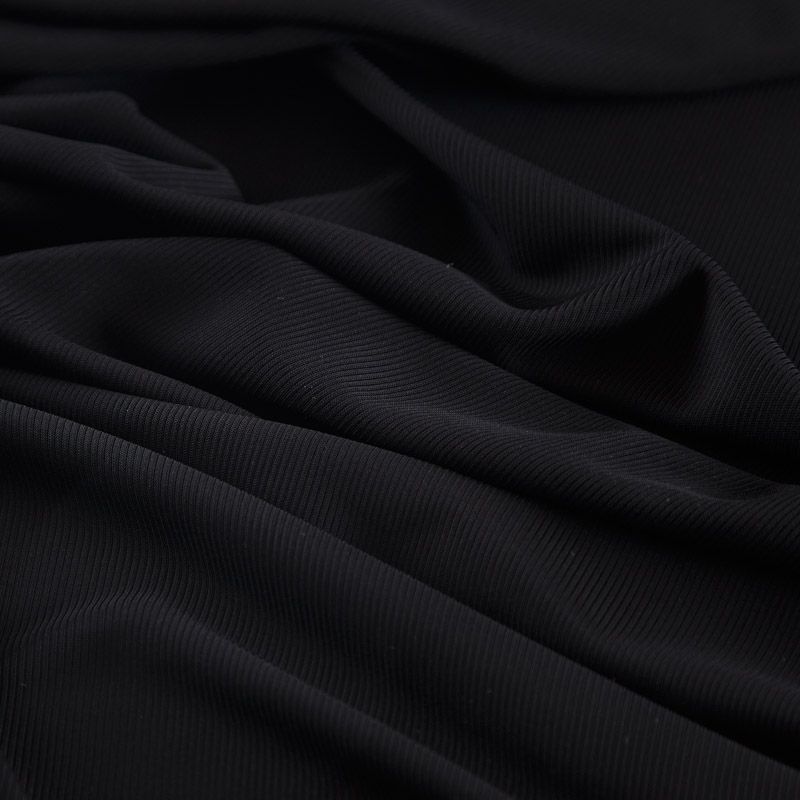 Трикотаж в рубчик 056-17185 черный однотонный в Якутске