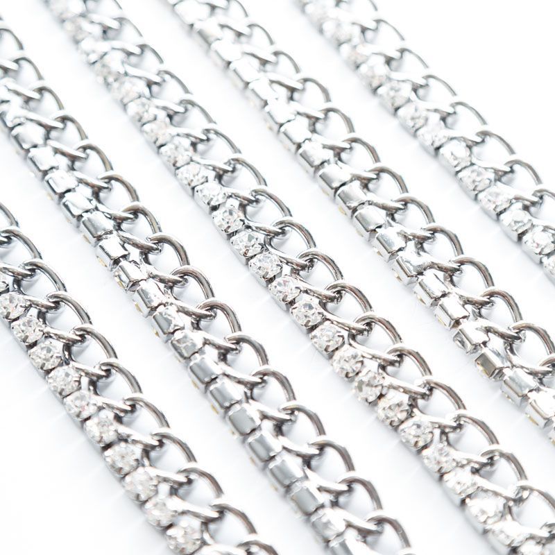 Цепь декоративная 17 мм металл/стразы 444195 темный никель