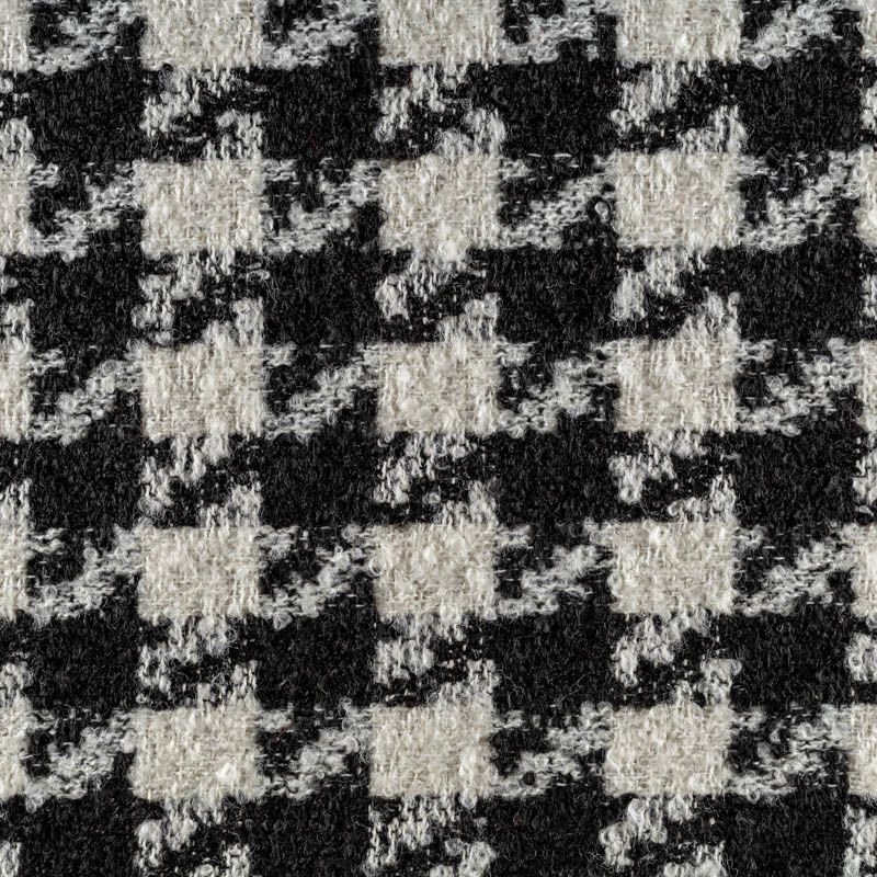 Твид с плетеной и немного буклированной поверхностью, узор "гусиная лапка" образуется переплетением черных и молочных нитей. Ткань не сухая, мягкая, но плотная, не просвечивает, теплая, хоршо драпируется. Отлично подойдет для пошива верхней одежды, жакетов, костюмов, юбок.