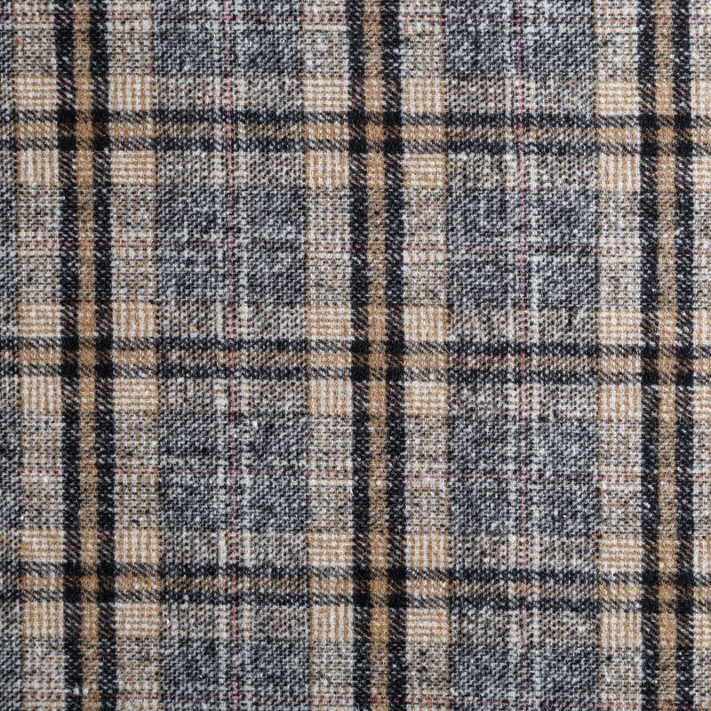 Фактурная и плотная твидовая ткань с добавлением хлопка в красивую черно-бежевую клетку. Ткань мягкая, пластичная, приятная на ощупь. Хорошо драпируется и образует формоустойчивые складки. Твид отлично подходит для пошива костюмов, пальто, пиджаков, брюк и курток, юбок, жилетов, головных уборов в классическом стиле.