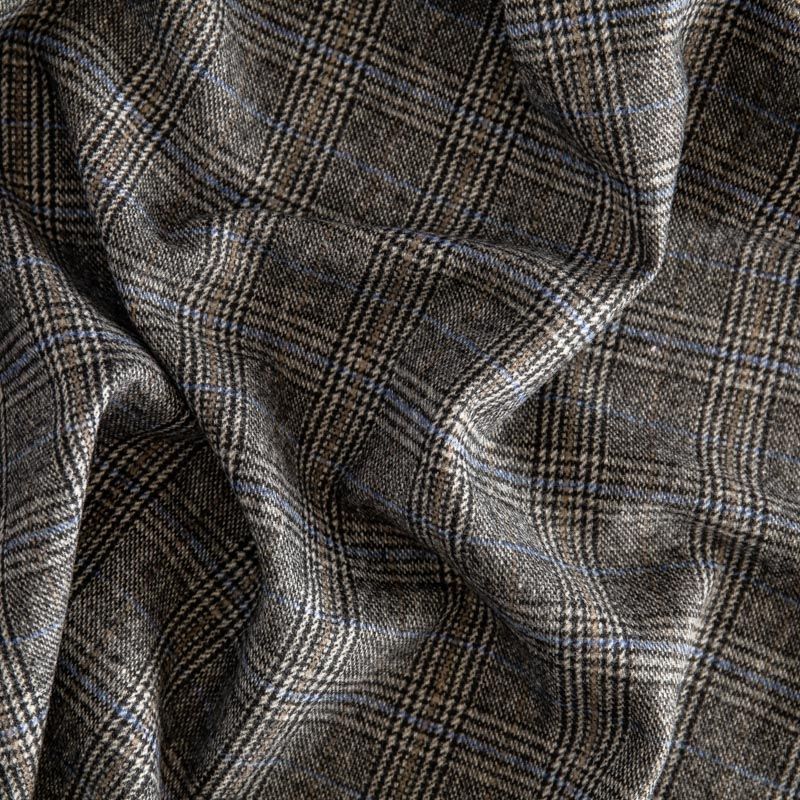 Фактурная и плотная твидовая ткань с добавлением натуральной шерсть в красивую и сложную клетку тартан. Материал саржевого переплетения, слегка шероховатый на ощупь. Хорошо драпируется и образует формоустойчивые складки. Ткань отлично подходит для пошива костюмов, пальто, пиджаков, брюк и курток, юбок, жилетов, головных уборов в классическом стиле.
