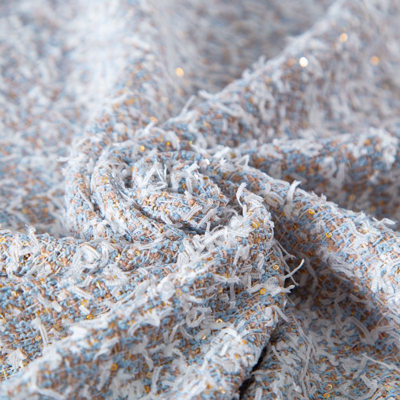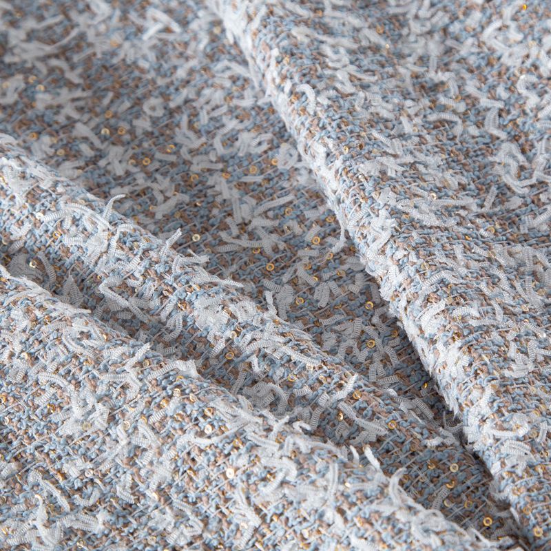 Твид с пайетками 052-20212 бежево-голубой в Якутске
