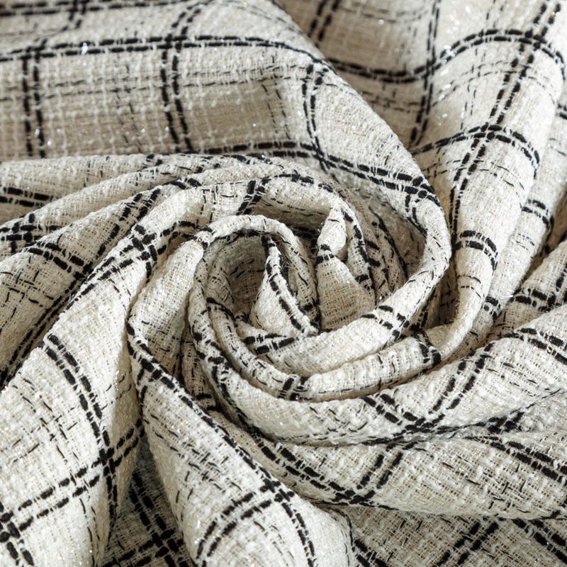 Мягкая, пластичная и объемная ткань, с разреженной и рельефной вывязанной структурой. Буклированный твид в стиле Шанель буквально соткан из различных по толщине и текстуре нитей, образующих рисунок в виде клетки. В плетение добавлена блестящая люрексная нить. Твид идеально подходит для пошива платьев, юбок, жакетов, легких пальто, эффектных бомберов и курток.