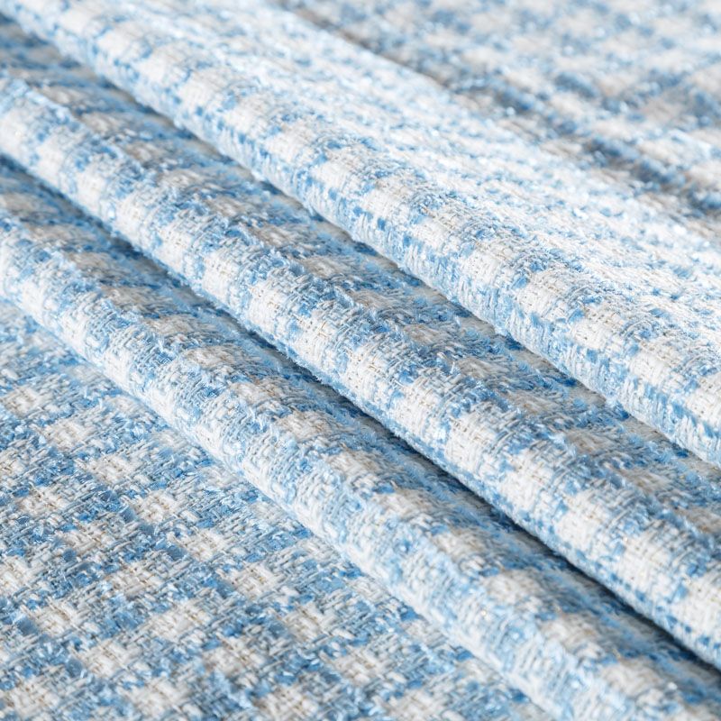 Мягкая, пластичная и объемная ткань, с разреженной и рельефной вывязанной структурой. Буклированный твид в стиле Шанель буквально соткан из различных по толщине и текстуре нитей, образующих рисунок в виде клетки. В плетение добавлена блестящая люрексная нить. Твид идеально подходит для пошива платьев, юбок, жакетов, легких пальто, эффектных бомберов и курток.