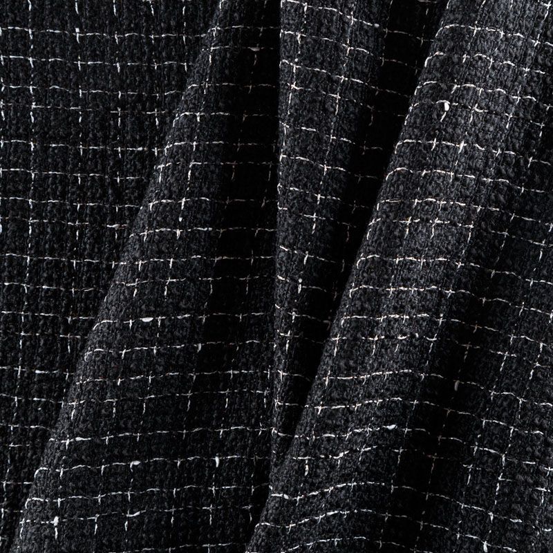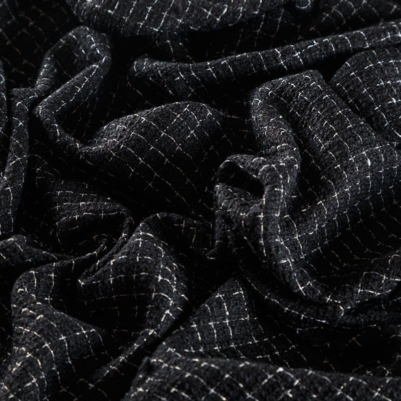 Мягкая, пластичная и объемная ткань, с разреженной и рельефной вывязанной структурой. Буклированный твид в стиле Шанель буквально соткан из различных по толщине и текстуре нитей, образующих рисунок в виде клетки. В плетение добавлена блестящая люрексная нить. Твид идеально подходит для пошива платьев, юбок, жакетов, легких пальто, эффектных бомберов и курток