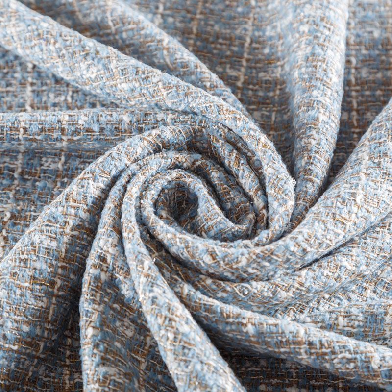 Мягкая, пластичная и объемная ткань с рельефной вывязанной структурой с добавлением хлопка. Буклированный твид в стиле Шанель буквально соткан из различных по толщине и текстуре нитей, образующих рисунок в виде клетки. Твид идеально подходит для пошива платьев, юбок, жакетов, легких пальто, эффектных бомберов и курток.