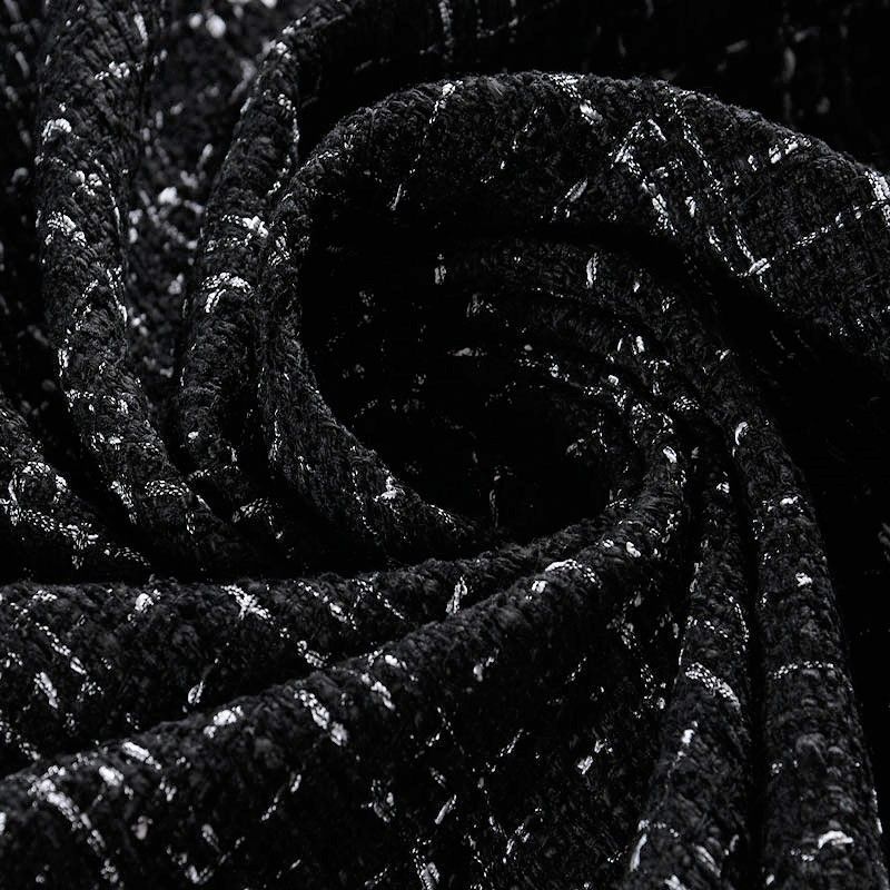 Мягкая, пластичная и объемная ткань, с разреженной и рельефной вывязанной структурой. Буклированный твид в стиле Шанель буквально соткан из различных по толщине и текстуре нитей, образующих рисунок в виде клетки. В плетение добавлена блестящая люрексная нить. Твид идеально подходит для пошива платьев, юбок, жакетов, легких пальто, эффектных бомберов и курток.