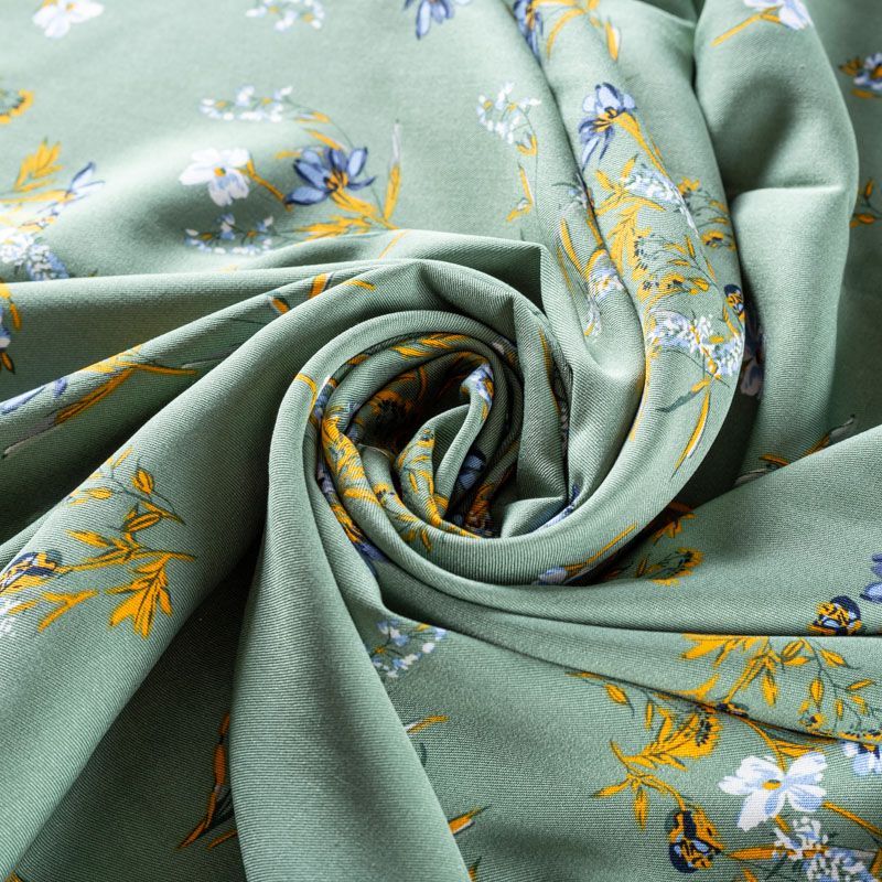 Твил-штапель 069-01573 полынный зеленый принтованный в Якутске