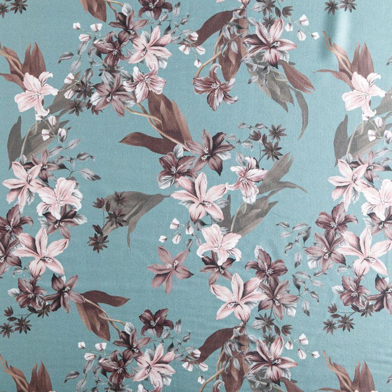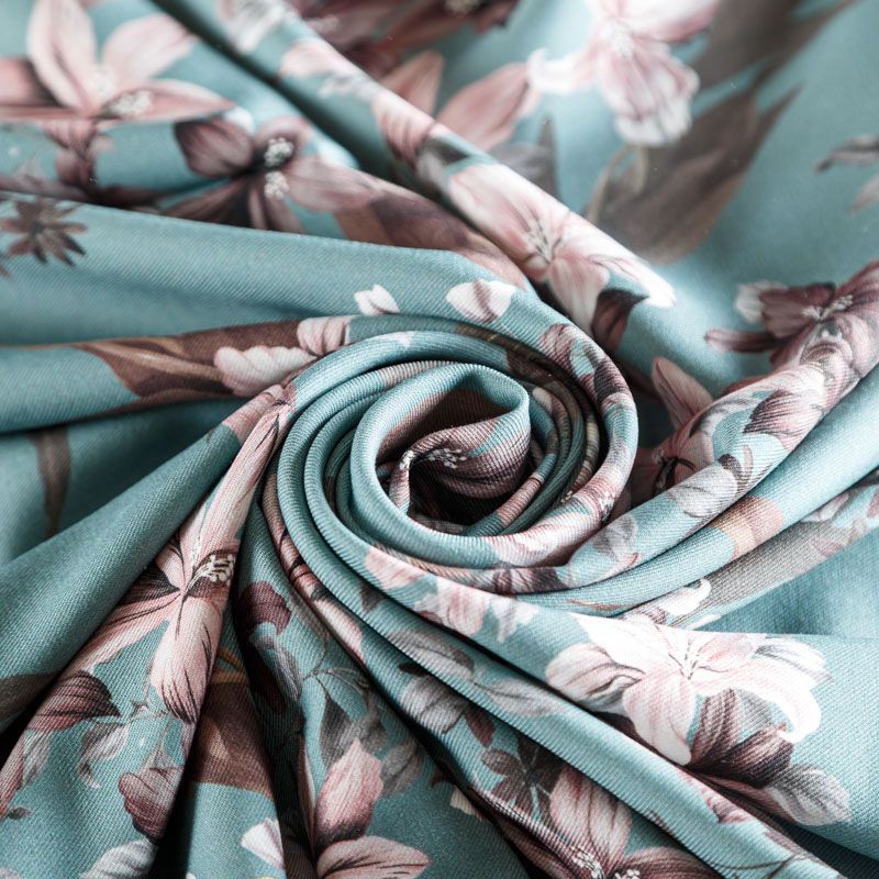 Твил-штапель 069-06479 серо-бирюзовый принтованный в Якутске