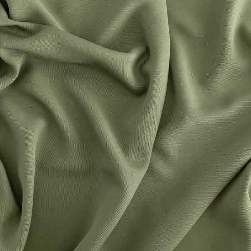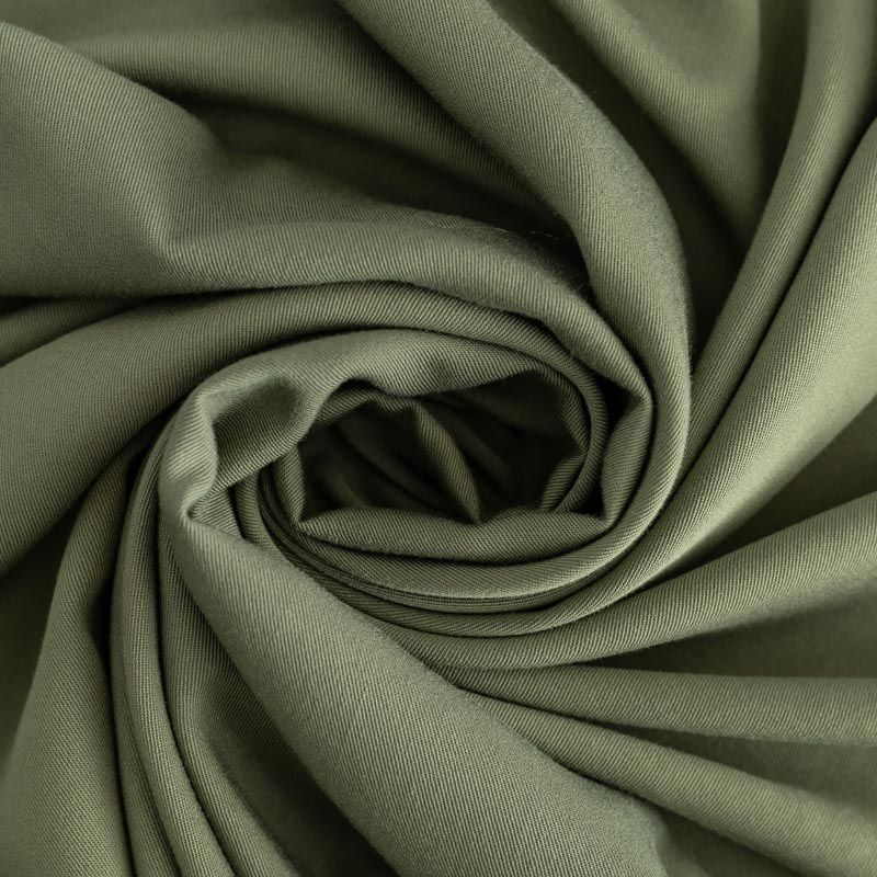 Мягкая ткань средней плотности, имеет саржевое плетение и характерный диагональный рубчик на поверхности. Отлично сохраняет форму, не сильно мнется и не деформируется в процессе эксплуатации. Красиво ложится в складки, поэтому прекрасно подойдет на длинные драпированные юбки и платья, на свободные брюки или шорты, топы.