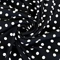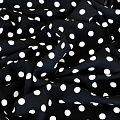 Плотная и мягкая ткань, имеет саржеве плетение и характерный диагональный рубчик на поверхности. Отлично сохраняет форму, не сильно мнется и не деформируется в процессе эксплуатации.  Красиво ложиться в складки, поэтому прекрасно подойдет на длинные драпированные юбки и платья, на свободные брюки или шорты, топы. Размер гороха 1см
