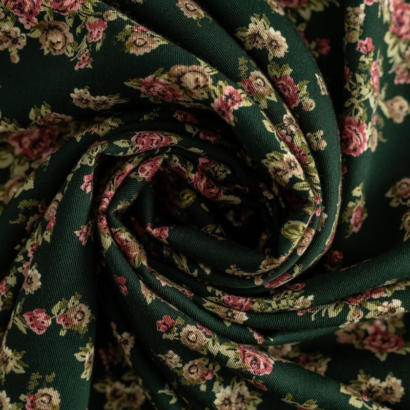 Твил-штапель К34-030 изумрудно-зеленый принтованный в Якутске
