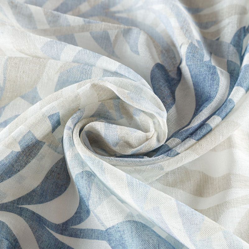 Полупрозрачная тюлевая ткань под лен с выразительной матовой рельефной поверхностью со стилизованным растительным принтом в бежево-синей гамме выглядит очень натурально и естественно. Красиво смотрится на любом карнизе и прекрасно подойдет для оформления различных помещений. Может использоваться как самостоятельно, так и в комплекте с плотными шторами. Нижний край оформлен утяжелителем.