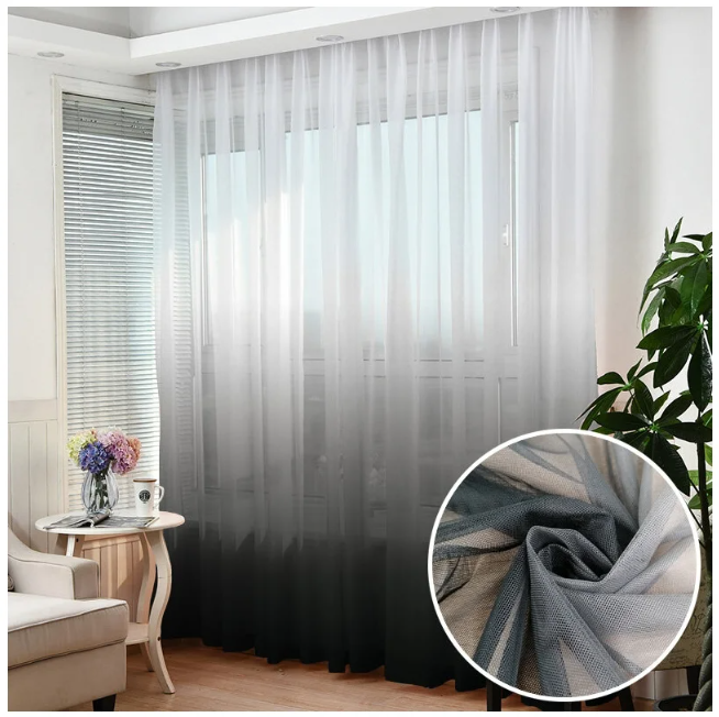 Легкая, почти невесомая грек сетка с градиентом хорошо держит форму и пропускает солнечные лучи. Тюль с эффектом амбре - плавным цветовым переходом от светлого тона к темному. По нижнему краю имеется утяжелитель, который придает идеальную форму и не заворачивает края.
