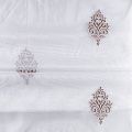 Сетка с вышивкой – это роскошный элемент дизайна, который преобразит любое помещение. Она отлично пропускает воздух, поэтому быстро сохнет после стирки. Прочная, ткань прослужит долго. Выдерживает большое количество стирок. Легкая, фактура ткани практически невесома, поэтому можно не опасаясь крепить ее даже на самый тонкий карниз. Сутажная элегантная вышивка приятного коричневатого оттенка в виде "дамасков" расположена по всей высоте ткани, нижний край украшен вышитым фестоном, без утяжелителя, фигурный.