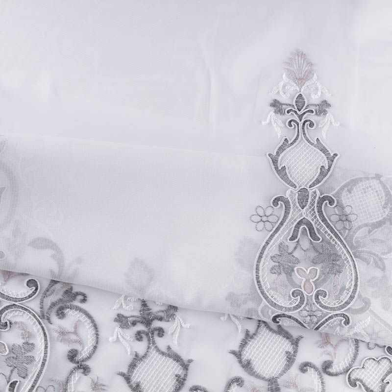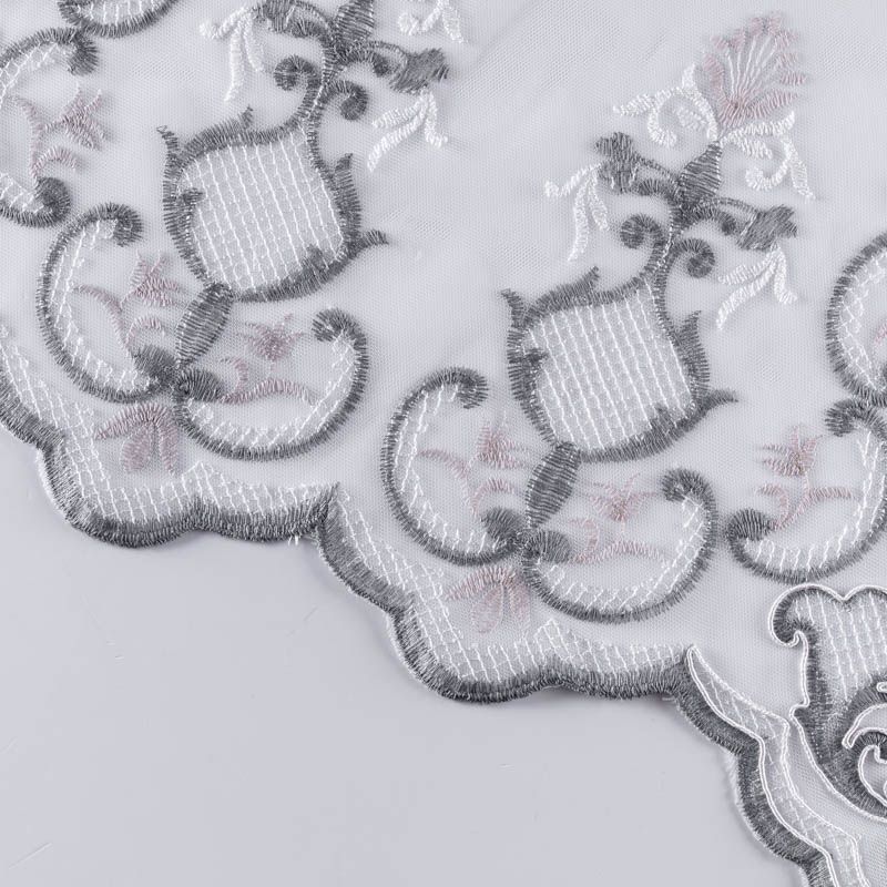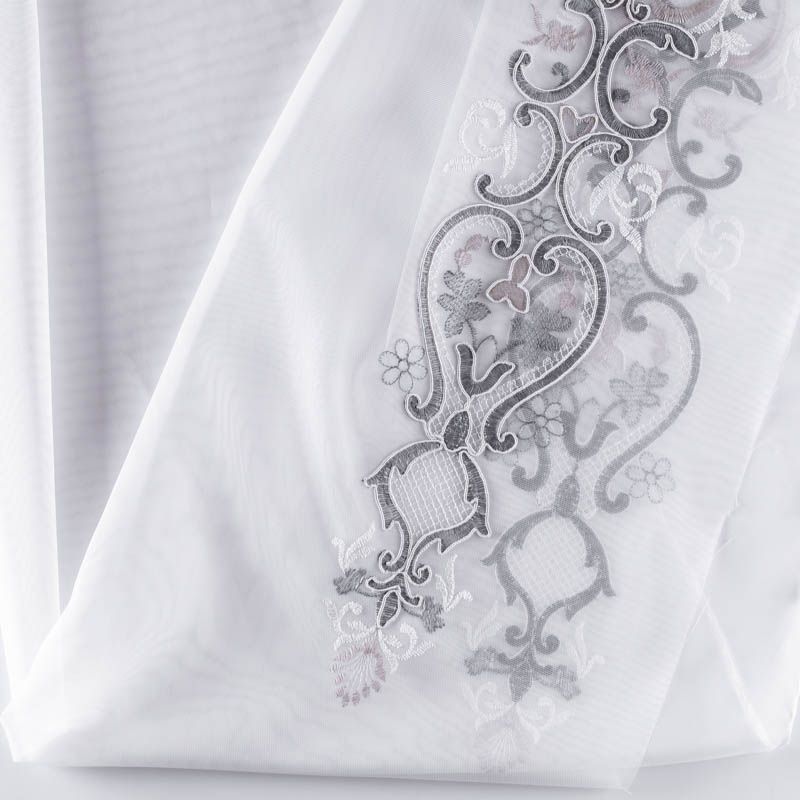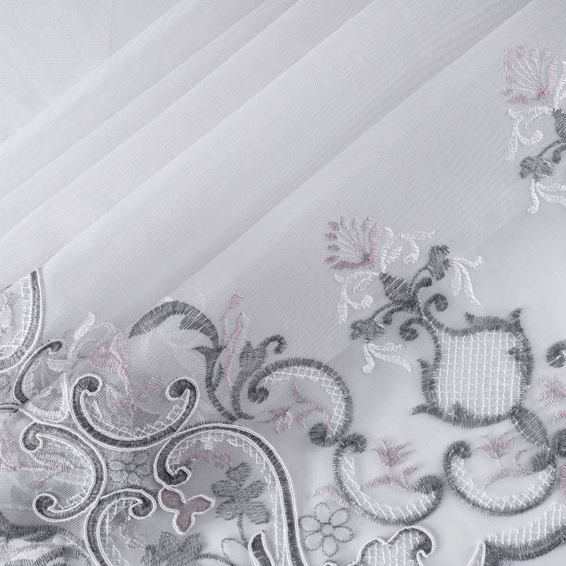 Сетка с вышивкой – это роскошный элемент дизайна, который преобразит любое помещение. Она отлично пропускает воздух, поэтому быстро сохнет после стирки. Прочная, ткань прослужит долго. Выдерживает большое количество стирок. Легкая, фактура ткани практически невесома, поэтому можно не опасаясь крепить ее даже на самый тонкий карниз. Сетка с вышивкой – это роскошный элемент дизайна, который преобразит любое помещение. Она отлично пропускает воздух, поэтому быстро сохнет после стирки. Прочная, ткань прослужит долго. Выдерживает большое количество стирок. Легкая, фактура ткани практически невесома, поэтому можно не опасаясь крепить ее даже на самый тонкий карниз. Тюль украшен  ажурным купоном серо-бежевого оттенка на высоту 75 см, без утяжелителя, край фигурный.