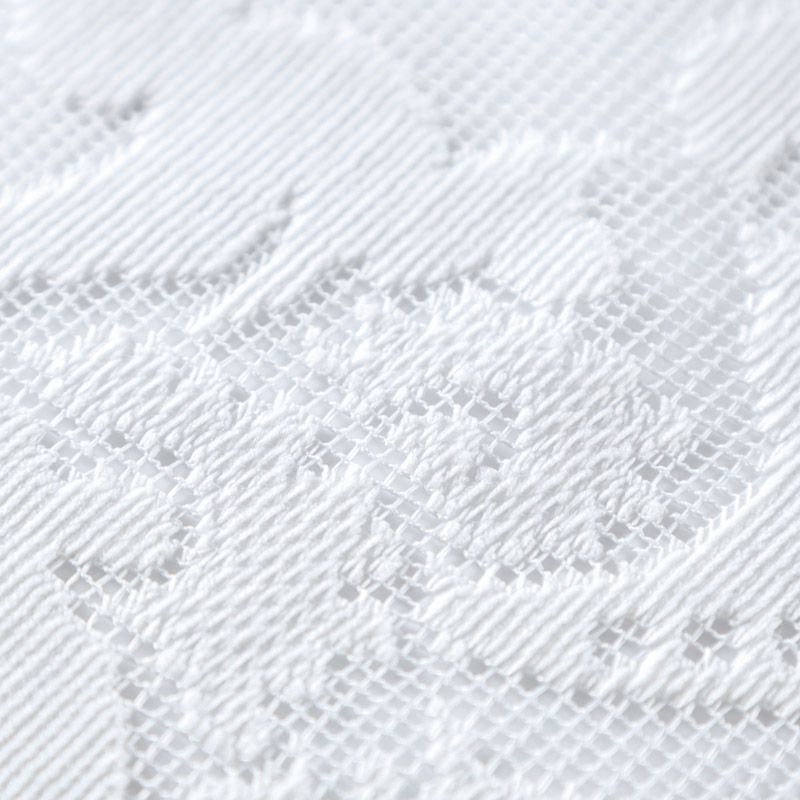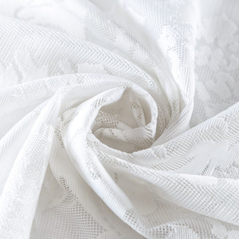 Красивая, нежная и легкая полупрозрачная сетка с крупным фактурным рисунком. Ткань прекрасно драпируется, образует ровные складки. Гармонично смотрится в разном интерьере: от классики до хай-тека. Жаккардовый рельеф и нитяные вышитые узоры придают свой колорит, создавая легкую изысканную атмосферу в помещении. Такой тюль очень практичен, его легко и быстро стирать и гладить, он практически не мнется.