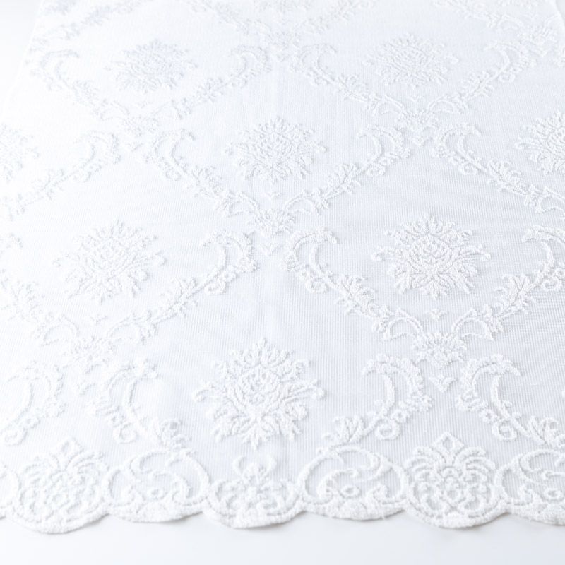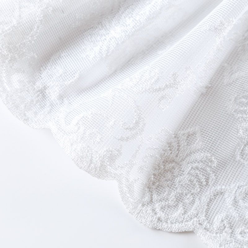 Красивая, нежная и легкая полупрозрачная сетка  с фактурным рисунком. Низ украшен ажурными фестонами. Ткань прекрасно драпируется, образует ровные складки. Гармонично смотрится в разном интерьере: от классики до хай-тека. Жаккардовый рельеф и нитяные вышитые узоры придают свой колорит, создавая легкую изысканную атмосферу в помещении. Такой тюль очень практичен, его легко и быстро стирать и гладить, он практически не мнется.