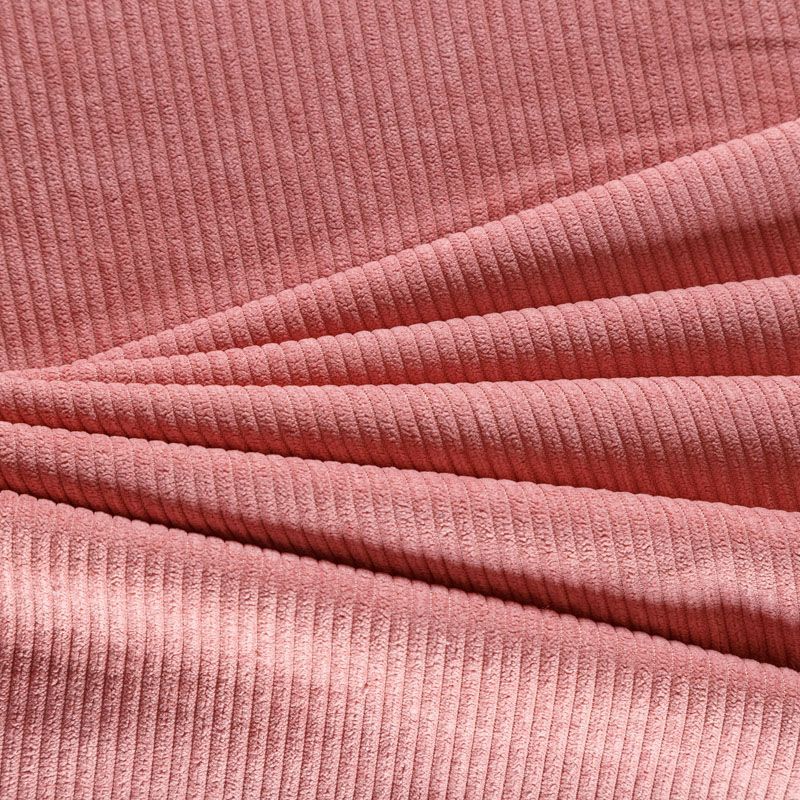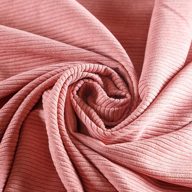 Плательно-костюмный вельвет средней плотности, но удивительно мягкий с матовым блеском и бархатистой поверхностью. За счет вытравки ворса лицевая сторона фактурная, в рубчик средней толщины. Ткань очень пластичная, хорошо и мягко драпируется, не мнется. Прекрасно подходит для пошива костюмов, жакетов, платьев, юбок, брюк, шорт, а также  для изготовления даже детской одежды.