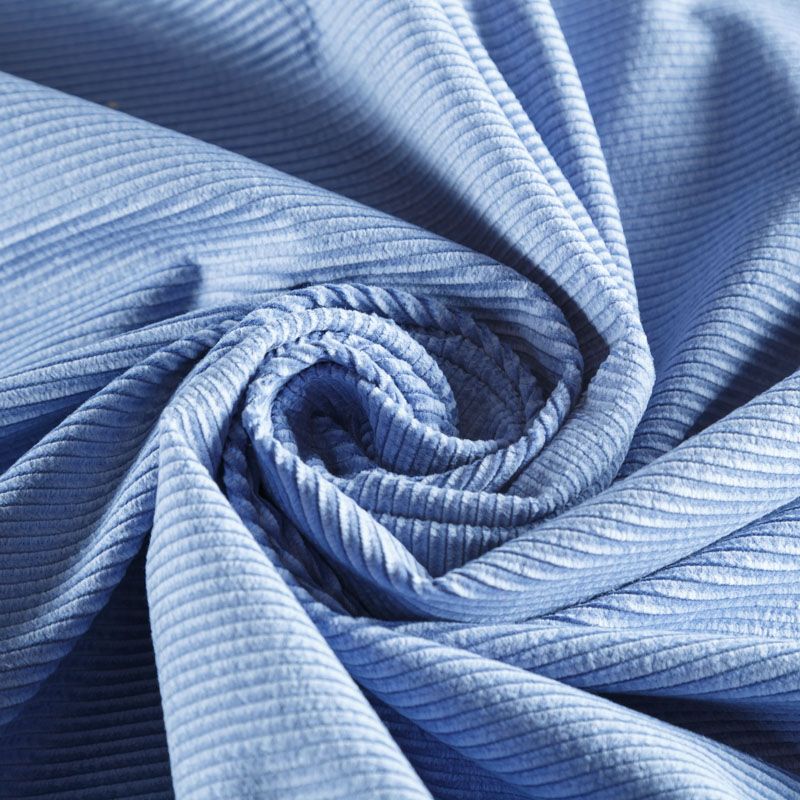 Итальянский хлопковый вельвет костюмно-плательной плотности голубого оттенка. Ткань имеет матовую фактурную поверхность в рубчик средней ширины, ворс короткий, мягкий и приятный на ощупь. Тянется за счет эластана в составе, хорошо драпируется и держит форму. Прекрасный вариант для пошива костюма, юбки, широких брюк, шорт, комбинезона, жакета, куртки или тренча.