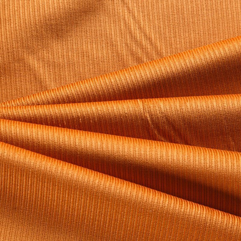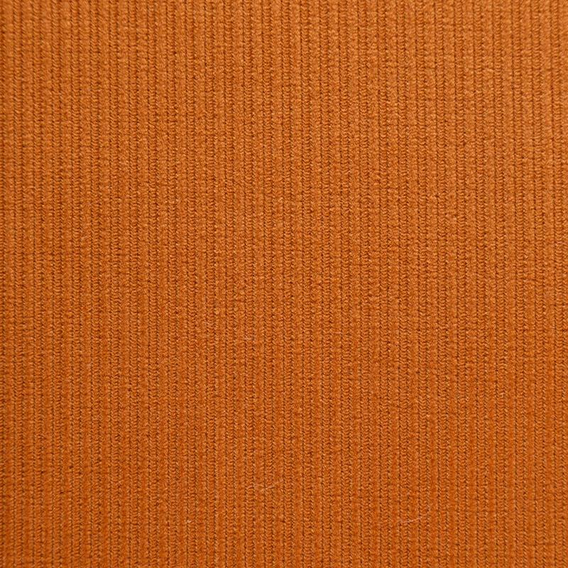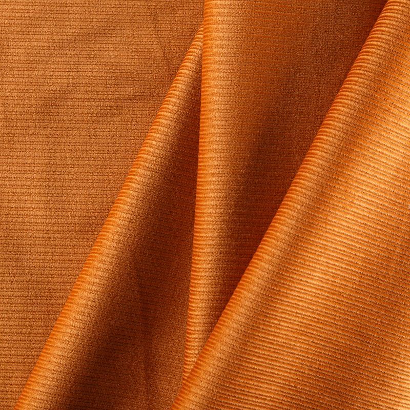 Итальянский хлопковый вельвет костюмно-плательной плотности в оттенке темной охры. Ткань имеет матовую фактурную поверхность в разноразмерный чередующийся рубчик, ворс короткий, мягкий и приятный на ощупь. Тянется за счет эластана в составе, хорошо драпируется и держит форму. Прекрасный вариант для пошива костюма, юбки, широких брюк, шорт, комбинезона, жакета, куртки или тренча.