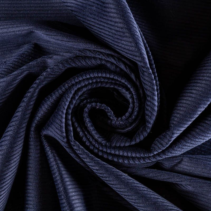 Костюмно-плательный вельвет из хлопка в красивом оттенке синего цвета. Очень приятный тактильно, поверхность бархатистая, рубчик средней ширины, не тянется, не просвечивает. Подойдет для пошива костюма, платья, юбки, брюк, верхней одежды.