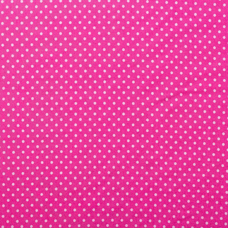 Плательно-рубашечная итальянская вискоза ярко-розового оттенка с принтом в мелкий горошек. Натуральная, дышащая ткань, очень приятная к телу, отлично драпируется, струится, не просвечивает. Хорошо подойдет для пошива платьев, рубашек, платьев-рубашек, блуз, юбок, брюк, летних костюмов, пыльников, детской одежды.