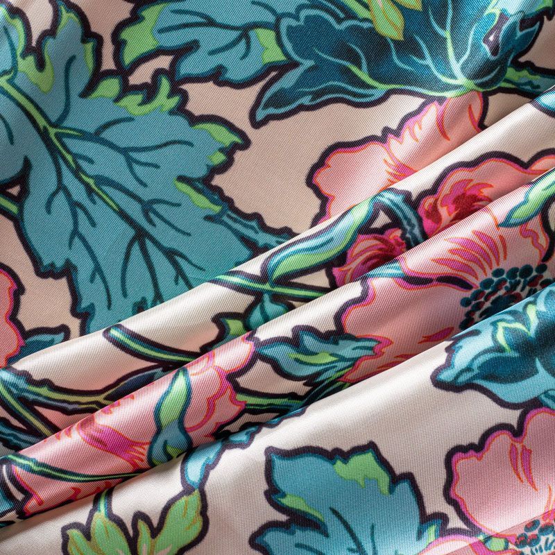 Плательно-рубашечная итальянская вискоза с цветочным принтом, выполненным в пастельных тонах. Натуральная, дышащая ткань, очень приятная к телу, отлично драпируется, струится, не просвечивает. Хорошо подойдет для пошива платьев, рубашек, платьев-рубашек, блуз, юбок, брюк, летних костюмов, пыльников, детской одежды.